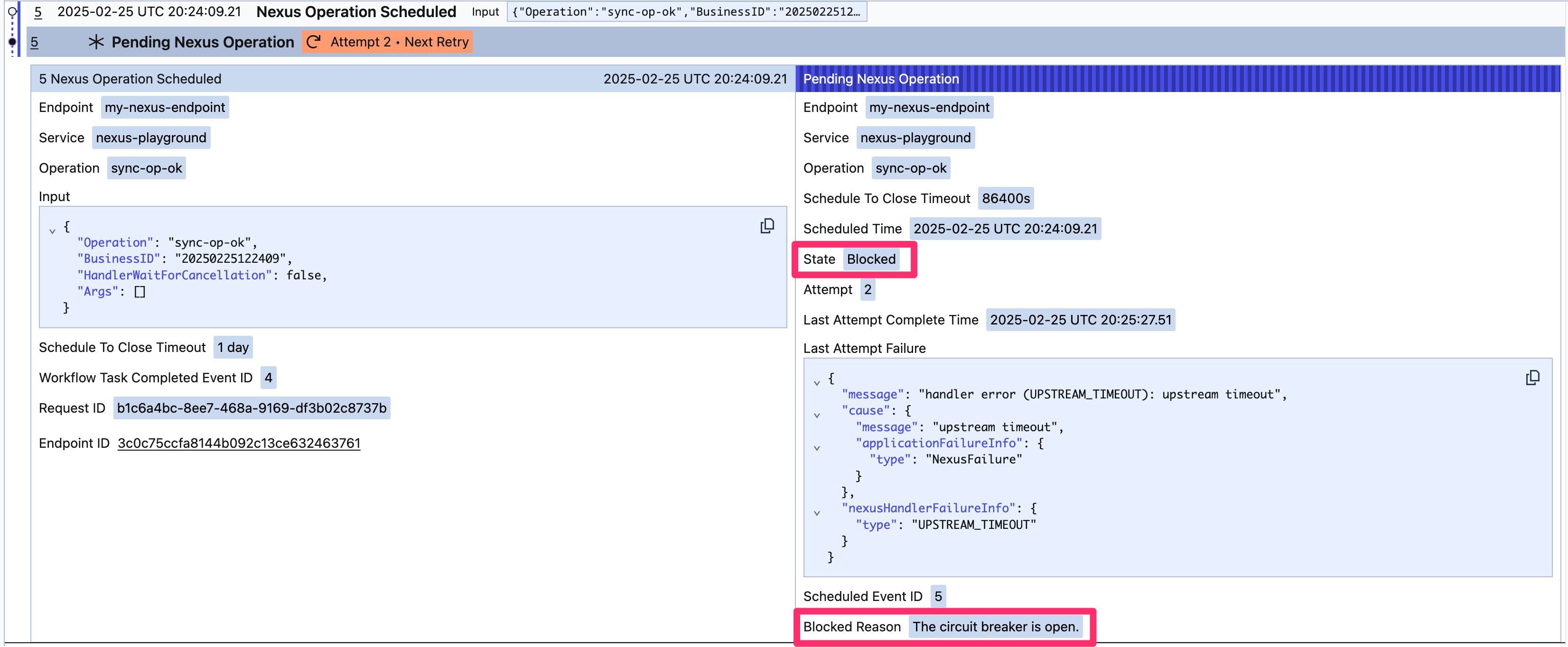 CancelationLastAttemptFailure {"message":"handler error (UPSTREAM_TIMEOUT): upstream timeout","cause":{"message":"upstream timeout","applicationFailureInfo":{"type":"NexusFailure"}},"applicationFailureInfo":{"type":"NexusHandlerError"}}